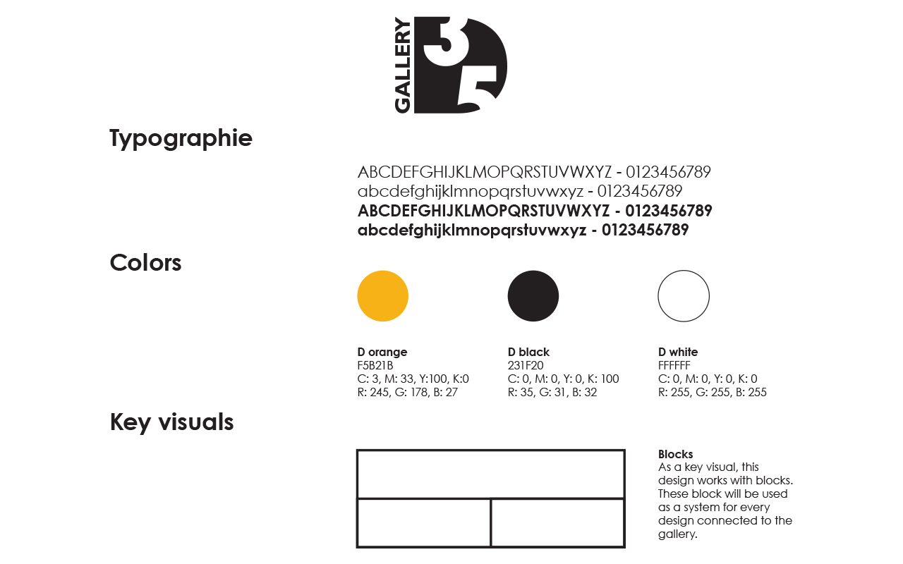 This project revolves around the design of the identity for the University of Applied Sciences Europe’s Gallery. The name “D3-5” derives from the university’s postal address, Dessauerstrasse 3-5 in Berlin. The mention of Dessauer may evoke memories of the city that housed the renowned Bauhaus school, establishing a strong connection to the purpose of the University of Europe. Additionally, the presence of the “Martin Gropius Bau” in Dessauerstrasse adds further significance to this name.